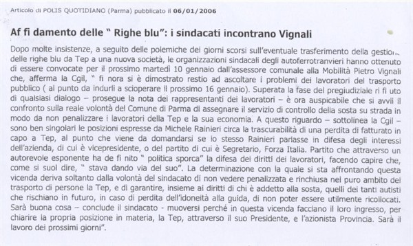 Scheda Inventario 6133 Serie C Numero ordine 1 Anno 2006 Data 2006, 06-01 Luogo Parma Periodicità Quotidiano Testata Polis Quotidiano
