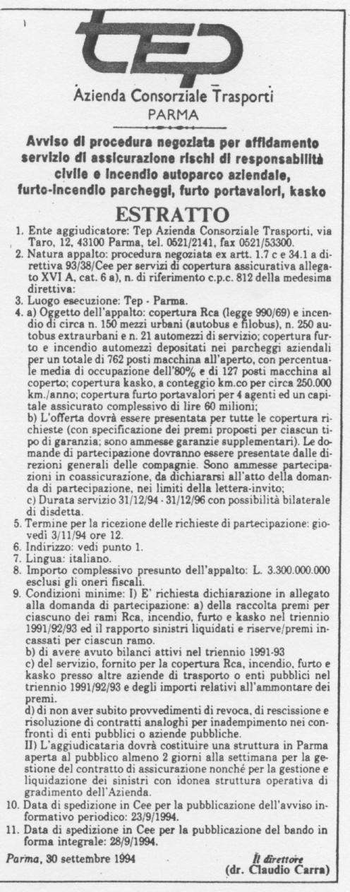 Scheda Inventario 3124 Serie C Numero ordine 6 Anno 1994 Data 1994, 17-10 Luogo Parma Autore Carra, Claudio Editore SEGEA Periodicità Quotidiano Testata La Gazzetta di Parma