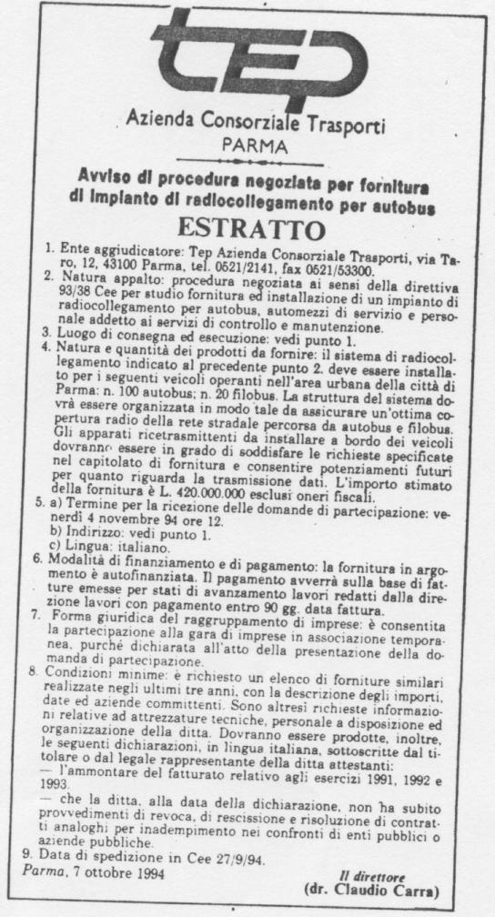 Bando: Fornitura di impianto di radiocollegamento per autobus