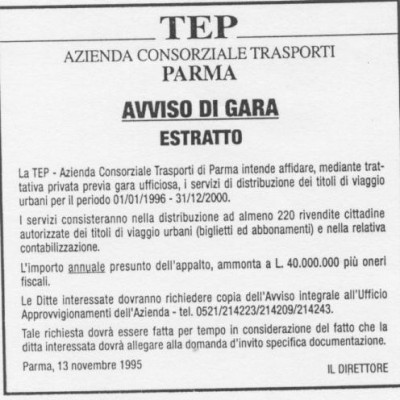 Scheda Inventario 3135 Serie C Numero ordine 8 Anno 1995 Data 1995, 17-11 Luogo Parma Autore Il direttore Periodicità Quotidiano Testata LA TRIBUNA di Parma