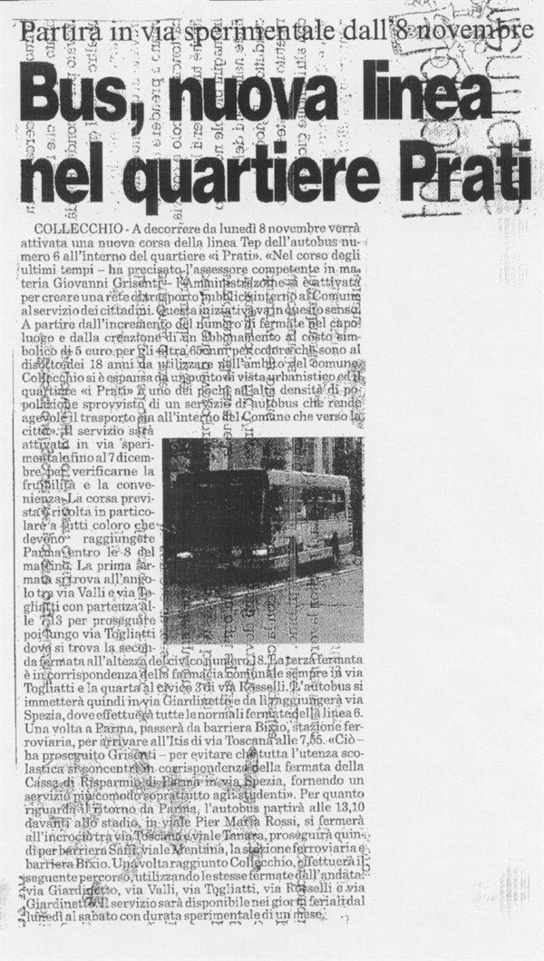 Scheda Inventario 3697 Serie C Numero ordine 12 Anno 2004 Data 2004, 26-10 Luogo Collecchio Autore - Editore SEGEA Periodicità Quotidiano Testata La Gazzetta di Parma