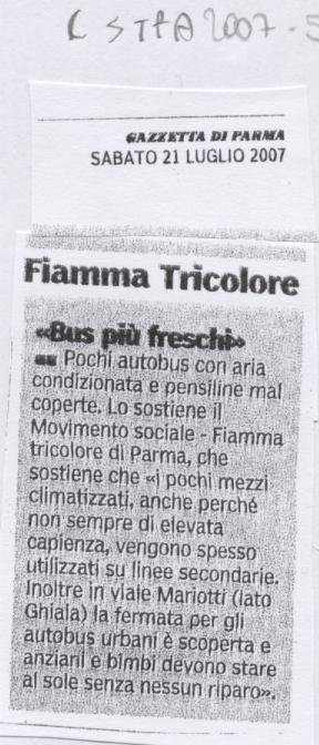 Scheda Inventario 6564 Serie C Numero ordine 56 Anno 2007 Data 2007, 21-07 Luogo Parma Autore - Periodicità Quotidiano Testata Gazzetta di Parma Soggettazione Servizi Trasporti pubblici