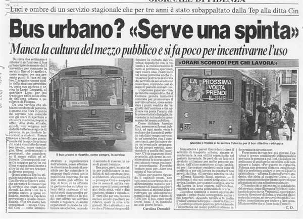 Scheda Inventario 3917 Serie C Numero ordine 12 Anno 1997 Data 1997, 22-11 Luogo Parma Autore Demaldè, Carolina Editore SEGEA Periodicità Quotidiano Testata La Gazzetta di Parma