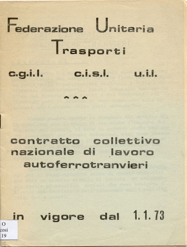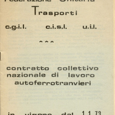 Scheda Categoria Sindacato Inventario 731 Serie O Numero ordine 20 Data 1973 Luogo Roma Autore Federazione unitaria trasporti Tipografia Tipografia delle Terme
