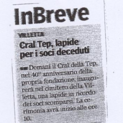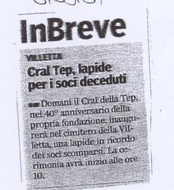 Scheda Inventario 6367 Serie C Numero ordine 1 Anno 2007 Data 2007 05-05 Luogo Parma Editore SEGEA Periodicità Quotidiano Testata Gazzetta di Parma Soggettazione CRAL-Tep