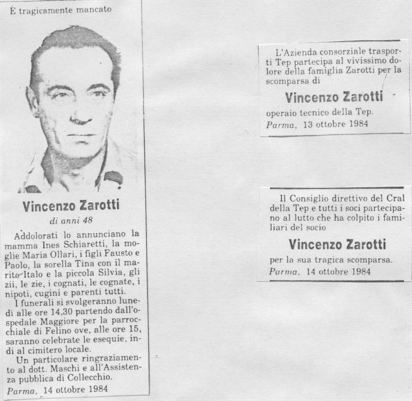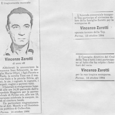 Scheda Inventario 1116 Serie C Numero ordine 3 Anno 1984 Data 1984, 14-10 Autore - Editore SEGEA Periodicità Quotidiano Testata La Gazzetta di Parma Soggettazione Necrologi