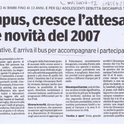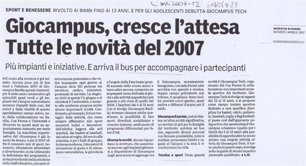 Giocampus, cresce l’ attesa. Tutte le novità del 2007. Più impianti e iniziative. E arriva anche il bus per accompagnare i partecipanti