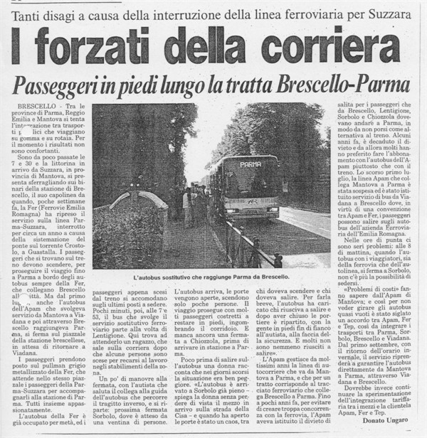 I forzati della corriera. Passeggeri in piedi lungo la tratta Brescello-Parma