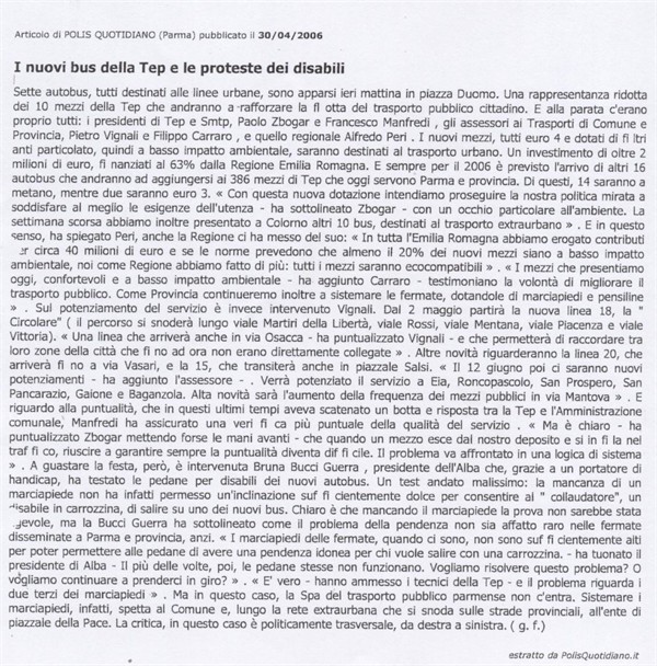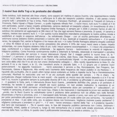 Scheda Inventario 6131 Serie C Numero ordine 3 Anno 2006 Data 2006, 30-04 Luogo Parma Periodicità Quotidiano Testata Polis Quotidiano Soggettazione Trasporti pubblici