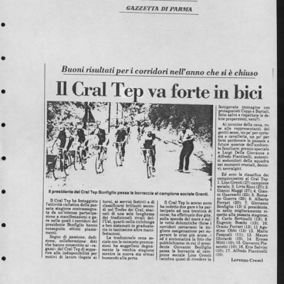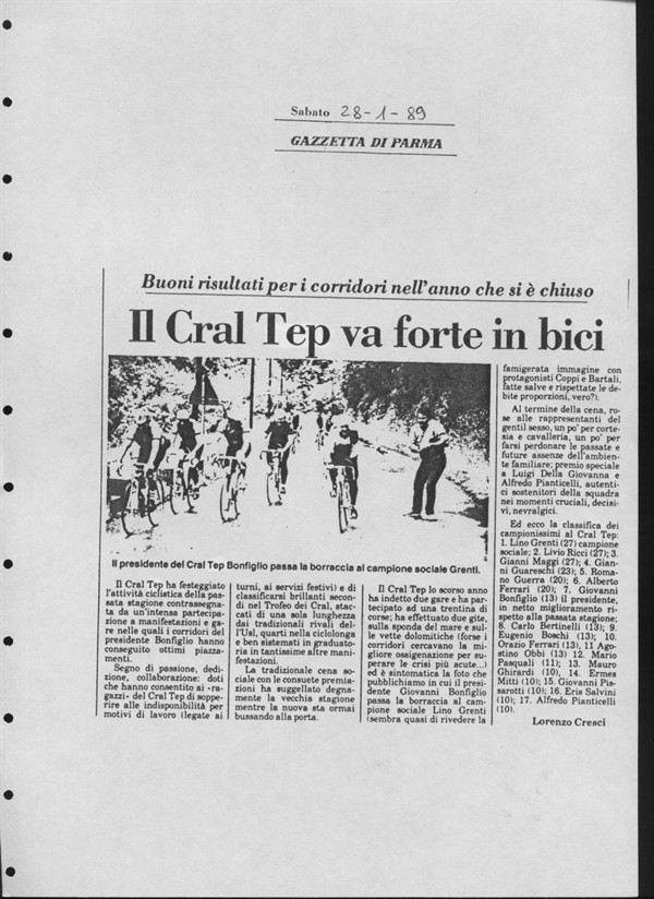 Scheda Inventario 838 Serie C Numero ordine 1 Anno 1989 Data 1989, 28-01 Autore Cresci, Lorenzo Editore SEGEA Periodicità Quotidiano Testata Gazzetta di Parma Soggettazione Sport Ciclismo