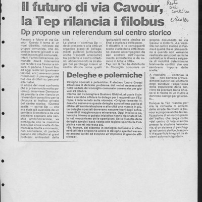 Il futuro di via Cavour, la TEP rilancia i filobus. Dp propone un referendum sul centro storico.