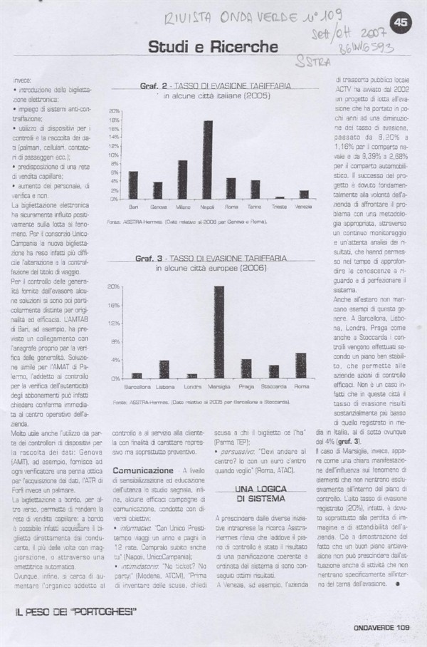 Scheda Inventario 6593 Serie C Numero ordine 85 Anno 2007 Data 2007, settembre-ottobre Autore - Periodicità Bimestrale Testata Rivista Onda Verde Copia b Soggettazione Statistiche