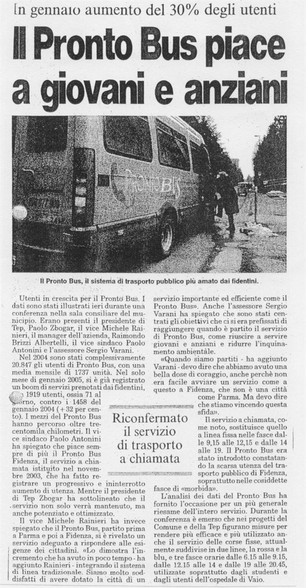 Scheda Inventario 4691 Serie C Numero ordine 33 Anno 2005 Data 2005, 26-02 Luogo Parma Autore - Editore SEGEA Periodicità Quotidiano Testata La Gazzetta di Parma Soggettazione Servizi Pronto Bus