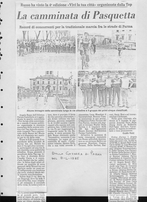 La camminata di Pasquetta. Russo ha vinto al quarta edizione “Vivi la tua città” organizzata dalla TEP. Record di concorrenti per la tradizionale marcia tra le strade di Parma.