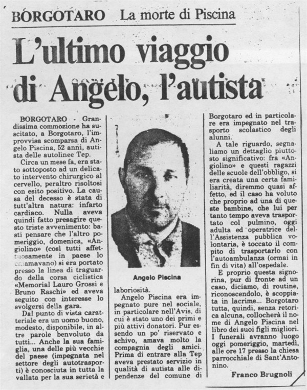 Scheda Inventario 1125 Serie C Numero ordine 1 Anno 1992 Data 1992, 28-07 Luogo Borgotaro Autore Brugnoli, Franco Editore SEGEA Periodicità Quotidiano Testata La Gazzetta di Parma Soggettazione Necrologi