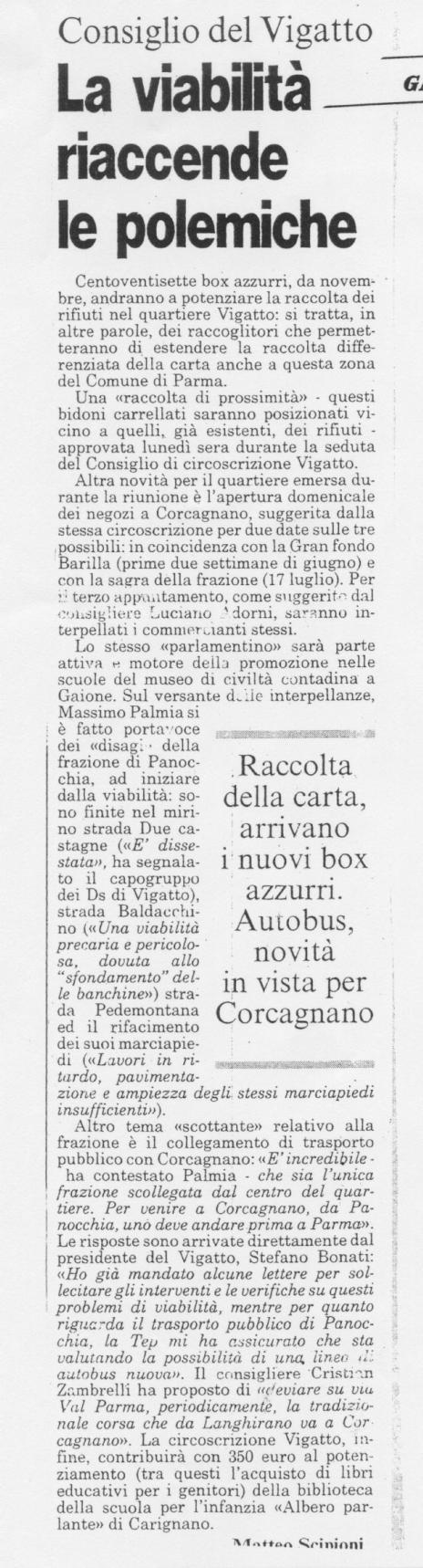 Scheda Inventario 3698 Serie C Numero ordine 13 Anno 2004 Data 2004, 27-10 Luogo Parma Autore Scipioni, Matteo Editore SEGEA Periodicità Quotidiano Testata La Gazzetta di Parma