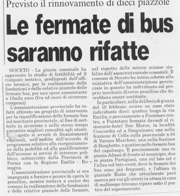 Scheda Inventario 4692 Serie C Numero ordine 34 Anno 2005 Data 2005, 27-02 Luogo Noceto Autore - Editore SEGEA Periodicità Quotidiano Testata La Gazzetta di Parma Soggettazione Trasporti pubblici