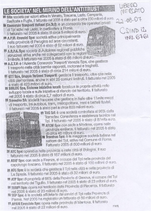 Scheda Inventario 6761 Serie C Numero ordine 12 Anno 2007 Data 2007, 22-09 Luogo Parma Autore - Periodicità Quotidiano Testata LiberoMercato Soggettazione Antitrust Inchieste