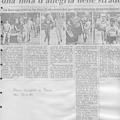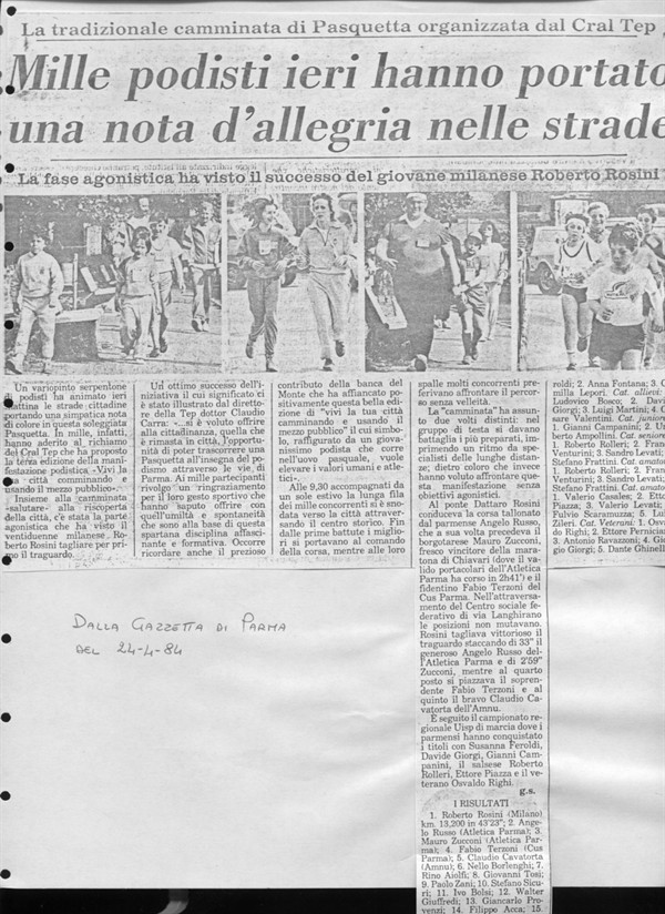 Scheda Inventario 824 Serie C Numero ordine 3 Anno 1984 Data 1984, 24-04 Luogo Parma Autore Sani, Guido Editore SEGEA Periodicità Quotidiano Testata Gazzetta di Parma Soggettazione Iniziative - Sport Camminata