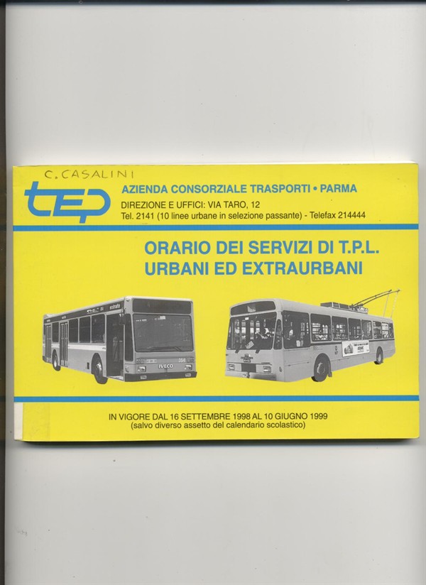 Scheda Categoria Documenti Inventario 4865 Serie H Numero ordine 2 Anno 1998 Data 1998 Luogo Parma Autore TEP Formato 20,5x14 Copia g