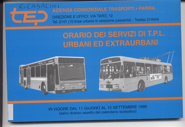 Orario dei servizi di T.P.L. urbani ed extraurbani in vigore dall’11 giugno al 15 settembre 1999