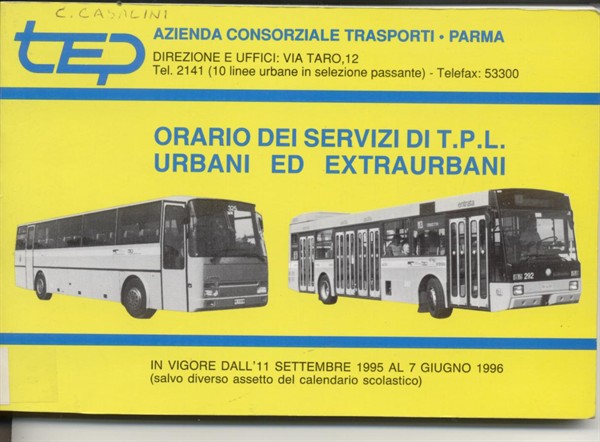 Orario dei servizi di T.P.L. urbani ed extraurbani in vigore dall’11 settembre 1995 al 7 giugno 1996