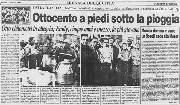 Scheda Inventario 860 Serie C Numero ordine 4 Anno 1993 Data 1993, 18-10 Luogo Parma Autore Sani, Guido Editore SEGEA Periodicità Quotidiano Testata Gazzetta di Parma Soggettazione Iniziative - Sport Camminata