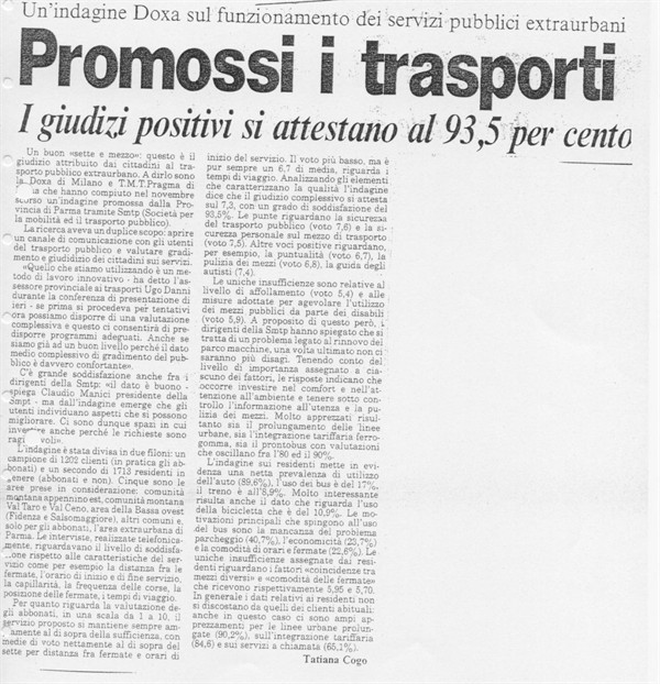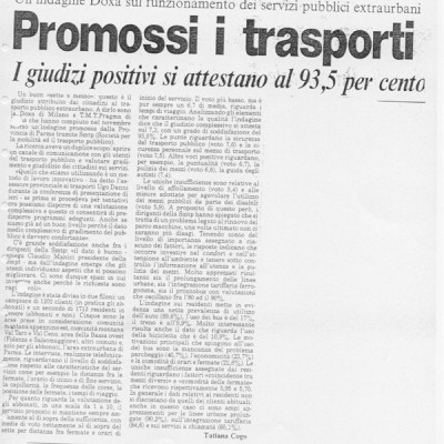 Promossi i trasporti. I giudizi positivi si attestano al 93,5 per cento.