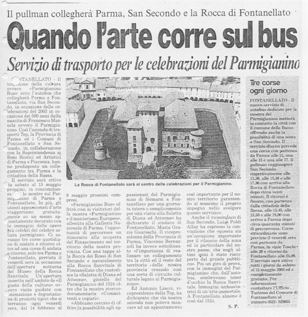 Scheda Inventario 3674 Serie C Numero ordine 1 Anno 2003 Data 2003, 05-02 Luogo Fontanellato Autore S. P. Editore SEGEA Periodicità Quotidiano Testata La Gazzetta di Parma
