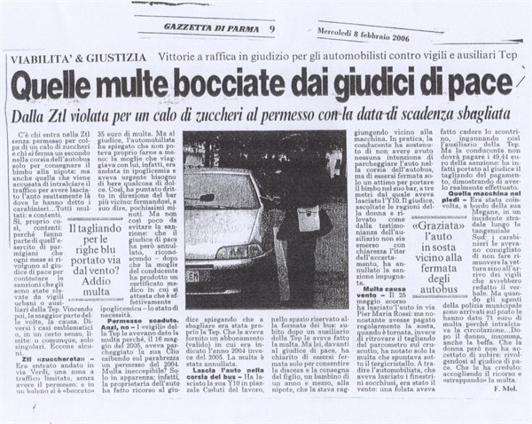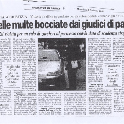 Scheda Inventario 6139 Serie C Numero ordine 7 Anno 2006 Data 2006, 08-02 Luogo Parma Editore SEGEA Periodicità Quotidiano Testata Gazzetta di Parma Soggettazione Righe blu, Sanzioni