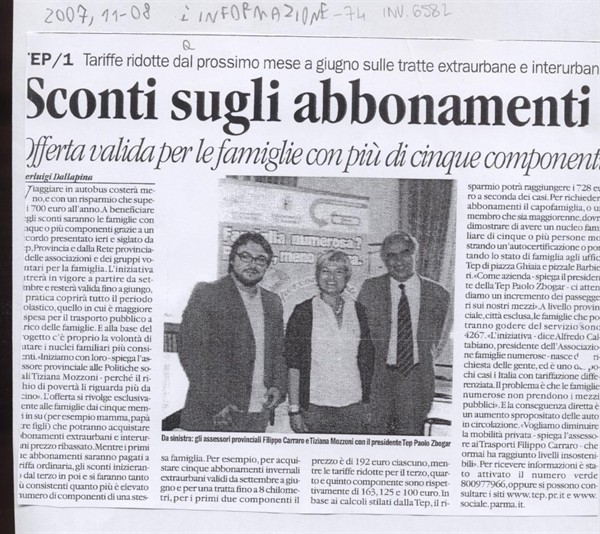 Scheda Inventario 6582 Serie C Numero ordine 74 Anno 2007 Data 2007, 11-08 Luogo Parma Autore Dallapina, Pierluigi Periodicità Quotidiano Testata L'Informazione Copia a Soggettazione Iniziative Servizi Tariffe