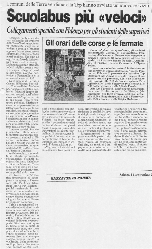 Scuolabus più “veloci”. Collegamenti speciali con Fidenza per gli studenti delle superiori