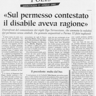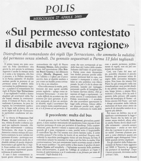 “Sul permesso contestato il disabile aveva ragione”. Dietrofront del comandante dei vigili Ugo Terracino, che ammette la validità del permesso senza simboli.