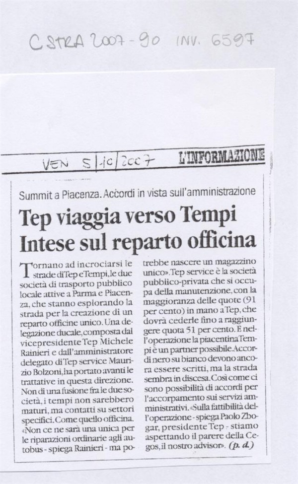 Tep viaggia verso Tempi. Intese sul reparto officina