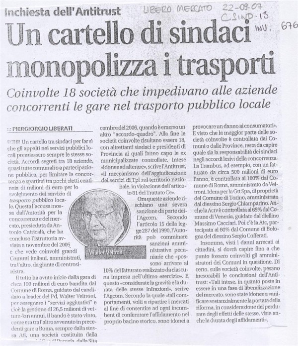 Scheda Inventario 6762 Serie C Numero ordine 13 Anno 2007 Data 2007, 22-09 Luogo Parma Autore Liberati, Piergiorgio Periodicità Quotidiano Testata LiberoMercato Soggettazione Antitrust Inchieste
