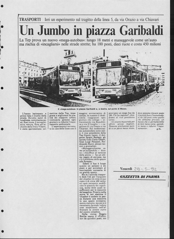 Un Jumbo in piazza Garibaldi. Ieri un esperimento sul tragitto della linea 5, da via Orazio a via Chiavari.