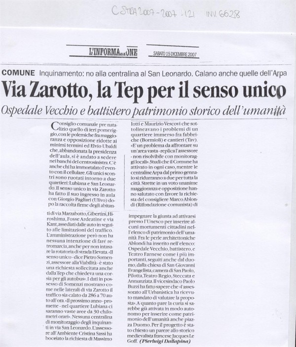 Via Zarotto, la Tep per il senso unico