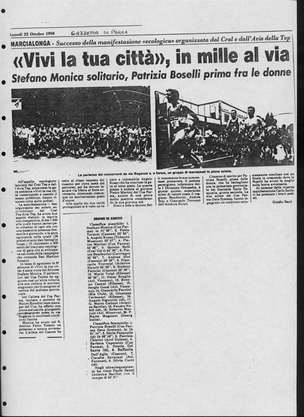 “Vivi la tua città”, in mille al via. Successo della manifestazione ecologica organizzata dal Cral e dall’Avis della TEP. Stefano Monica solitario. Patrizia Boselli prima fra le donne.