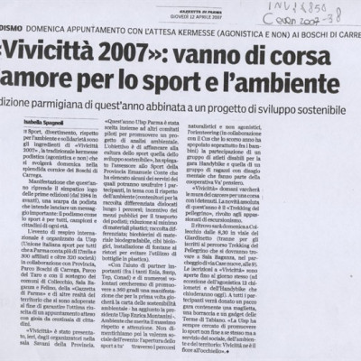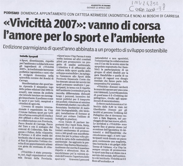 Scheda Inventario 6856 Serie C Numero ordine 38 Anno 2007 Data 2007, 12-04 Luogo Parma Autore Spagnoli, Isabella Periodicità Quotidiano Testata Gazzetta di Parma Soggettazione Sponsor