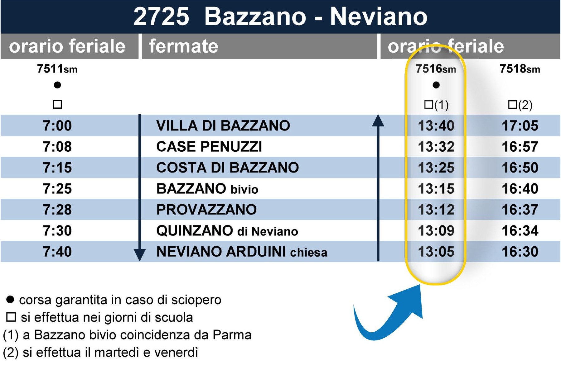 Linea 2725 Bazzano – Neviano: anticipo corsa 7516sm